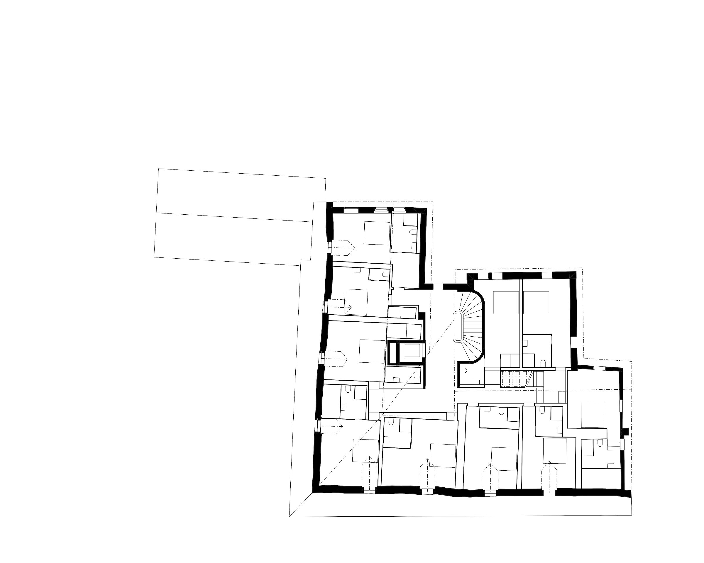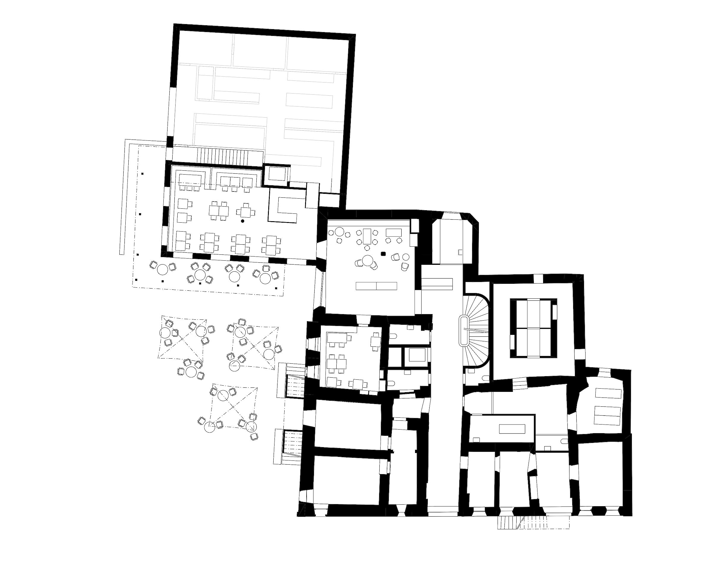 Neu entstehen 38 Doppelzimmer, verschiedene Restaurationsmöglichkeiten, ein Saal für unterschiedliche kulturelle und festliche Nutzungen sowie ein kleiner Wellness-Bereich. Das neue Boutiquehotel soll mit seinem vielfältigen Angebot wieder Treffpunkt für die einheimische Bevölkerung und Aufenthaltsort für Gäste sein.