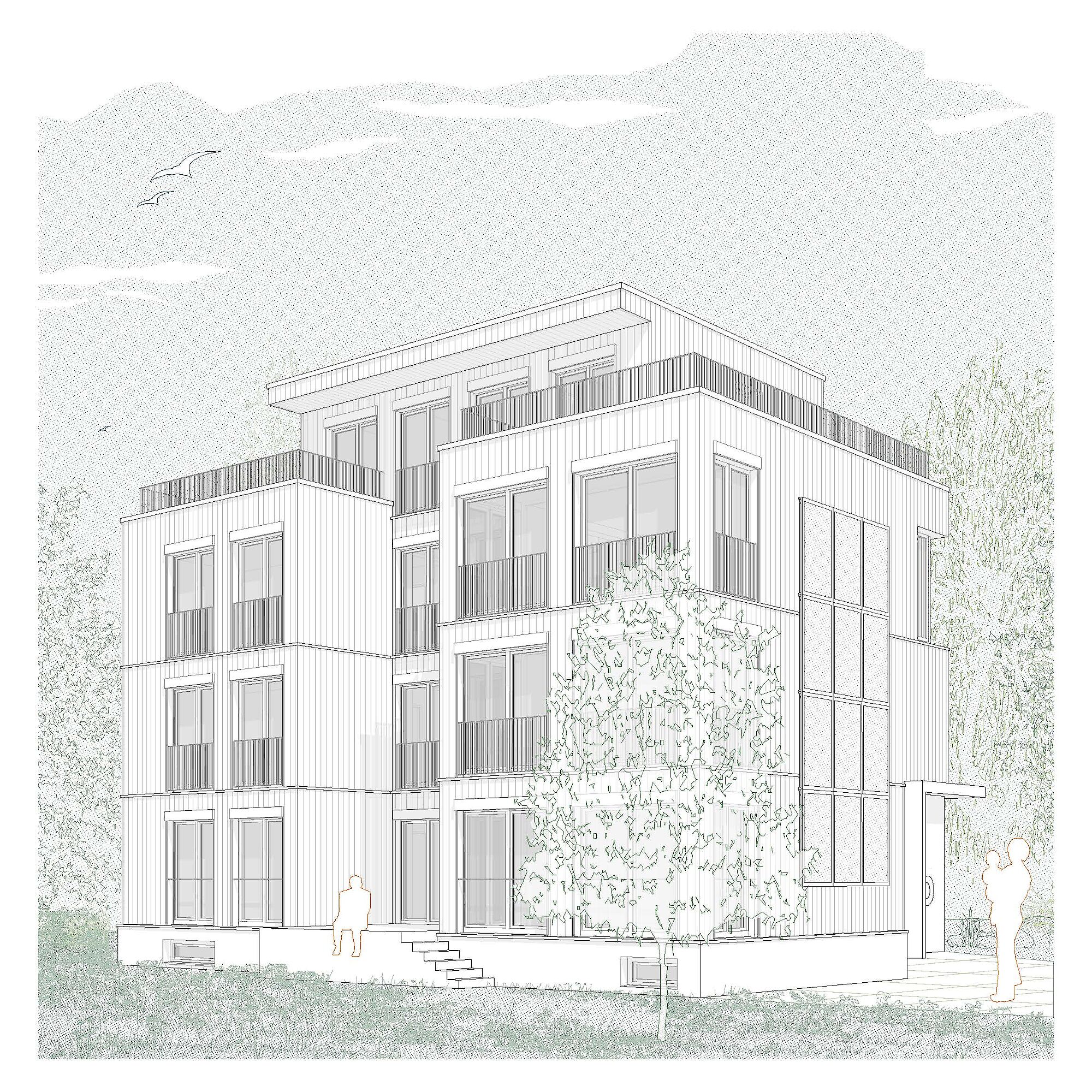 Das Projekt am Langenhagweg in Allschwil wurde in Zusammenarbeit mit der Renggli AG als Holzbau konzipiert. Das Mehrfamilienhaus umfasst zwei Maisonettewohnungen sowie eine Geschosswohnung. Das Gebäude wird im Minergie-P-Standard mit integrierter PV-Fassade realisiert.